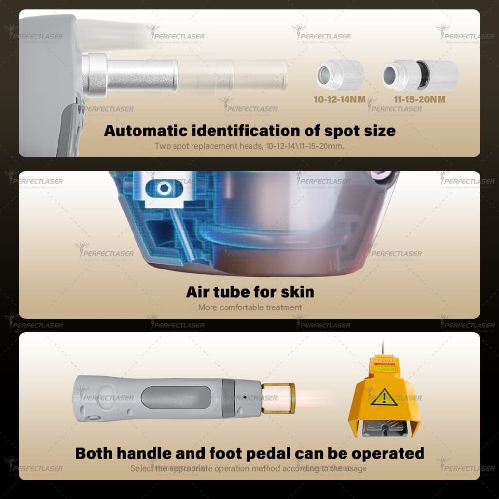 – Safety & Efficiency: The device balances high energy with precise control, minimizing side effects. Its adjustable spot size (8-20mm) and parameters enable fast treatment of large areas, reducing session times while ensuring consistent, reliable results.