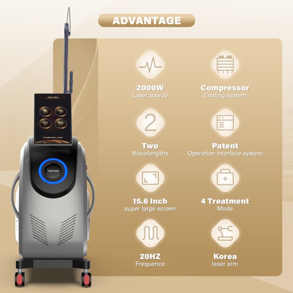 – Tattoo Removal: Efficiently removes black, blue, and colored tattoos (via different wavelengths).