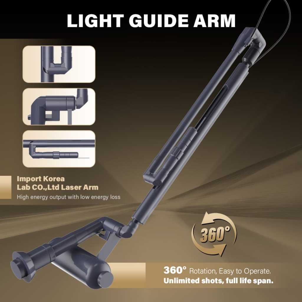 – Light Guide Arm: Imported from South Korea, the 360° rotatable light guide arm allows flexible positioning with minimal energy loss.