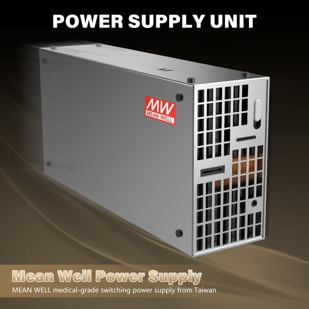 – Power Supply: Features a MEAN WELL medical-grade switching power supply from Taiwan, guaranteeing stable and safe energy transmission.