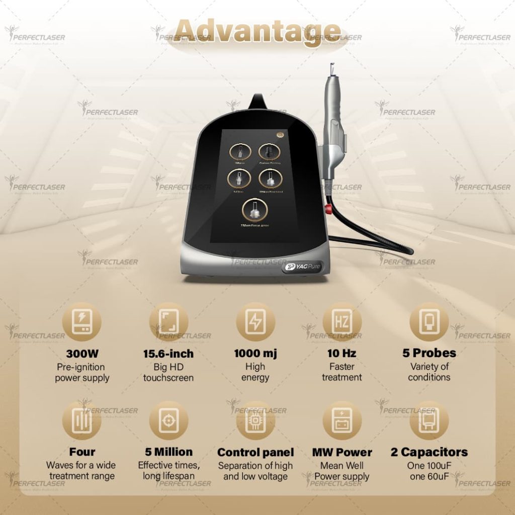 – Multi-Functional Applications: It can be used for pigmentation removal, tattoo removal (covering various colors and depths), carbon laser skin rejuvenation (whitening and texture improvement), skin brightening, and eyebrow removal.