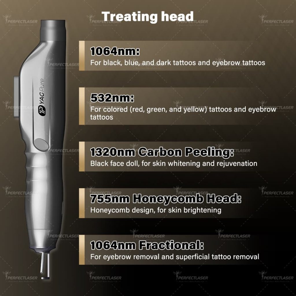 – 1064nm Fractional: For eyebrow removal and superficial tattoo removal.
