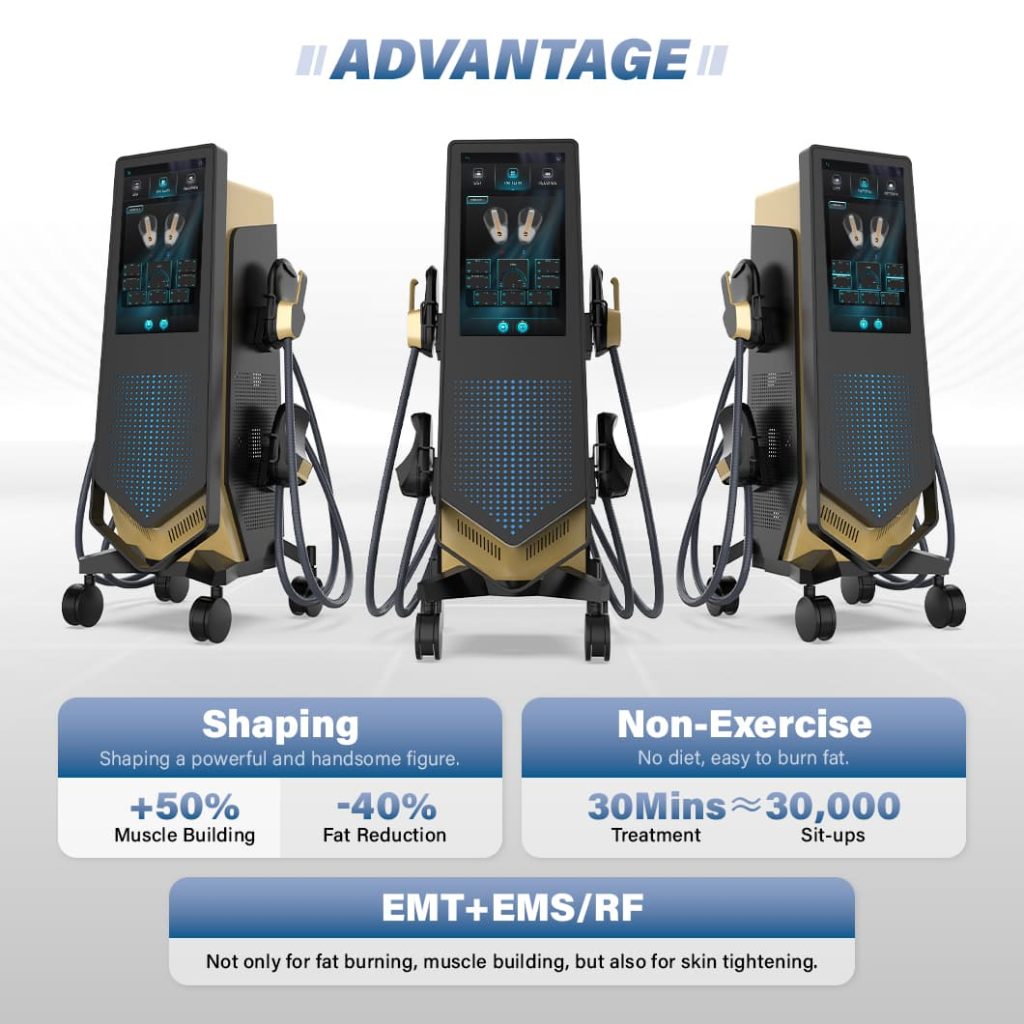1. Efficient and non-invasive: 30-minute treatment for approximately 30000 sit ups, non-invasive and painless without the need for dieting or exercise. It can achieve a 40% reduction in fat and a 50% increase in muscle mass, with significant shaping effects on the waist, abdomen, buttocks, legs, and other areas.