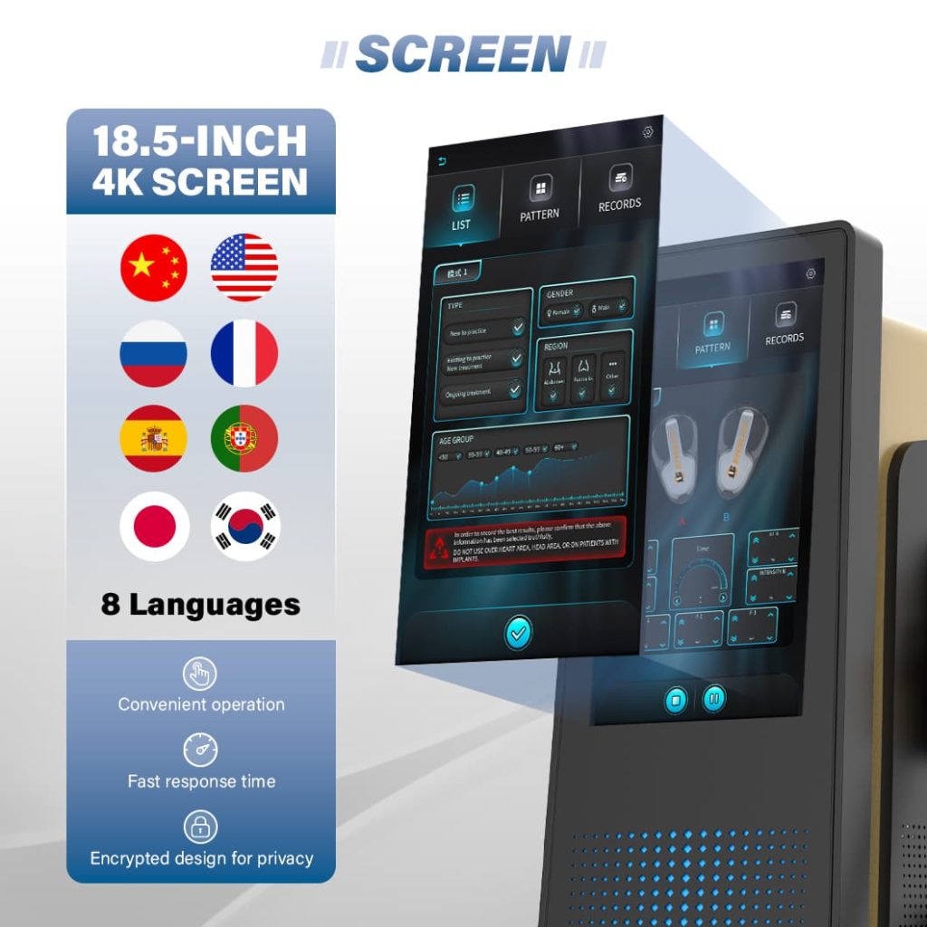 4. User friendly: Multiple controllers cover the entire body area, with a simple and easy-to-use interface that adapts to 8 language requirements, balancing convenience and privacy.