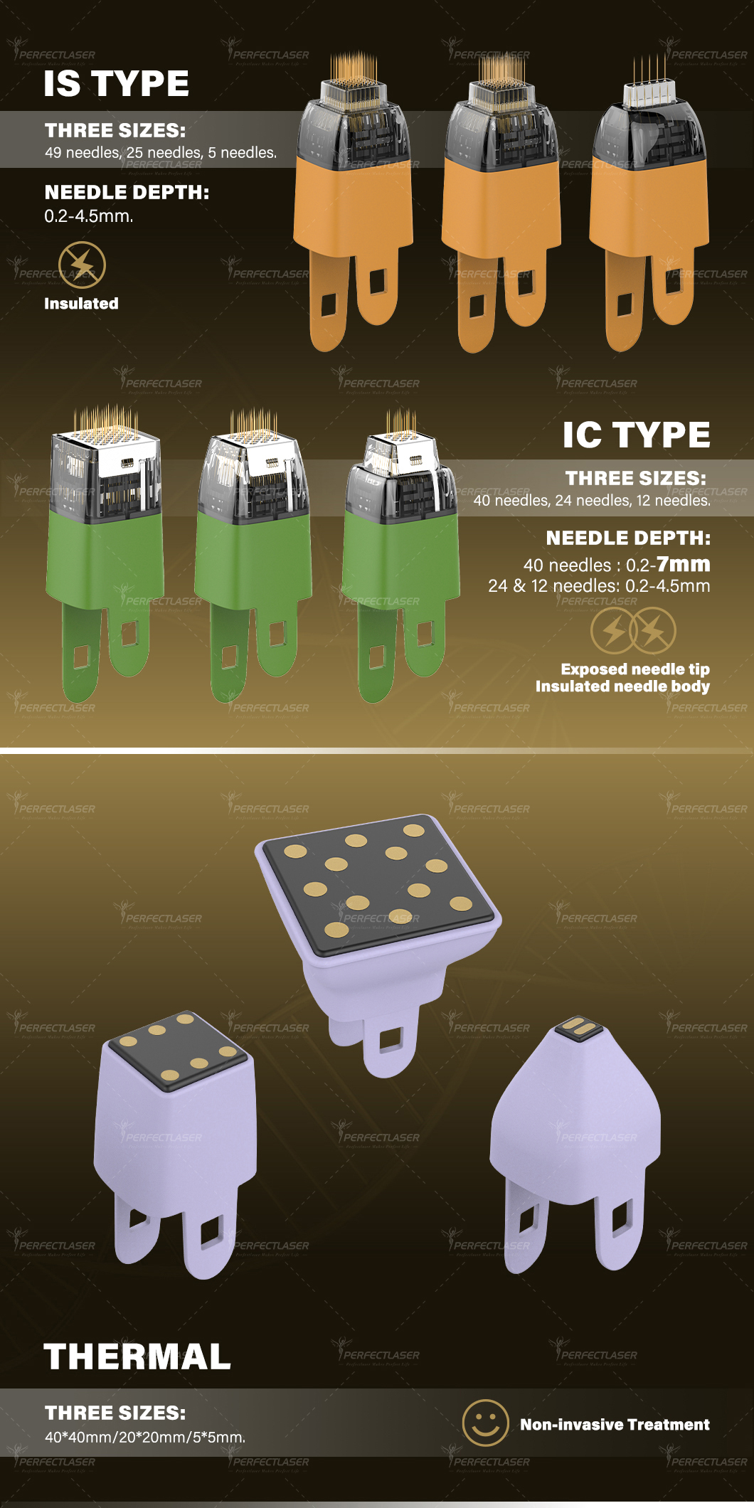 - Three models microneedle tips available: 25pin (for face), 49pin (for face&body), 81pin (For body). different needles according to the skin condition. For the whole face and body.